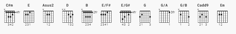 E E/F# E/G# E Asus2 B E I'm the one who wants to be with you. E E/F# E/G# E Asus2 B E Deep inside I hope you'll feel it too. E E/F# E/G# E Asus2 B C#m Waited on a line of greens and blues E E/F# E/G# E Asus2 B E just to be the next to be with you. E E/F# E/G# E Asus2 B E Just to be the next to be with you. |
