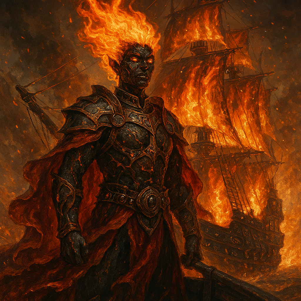 Race: Fire-touched humanoid (likely Fire Genasi or elemental-blooded)