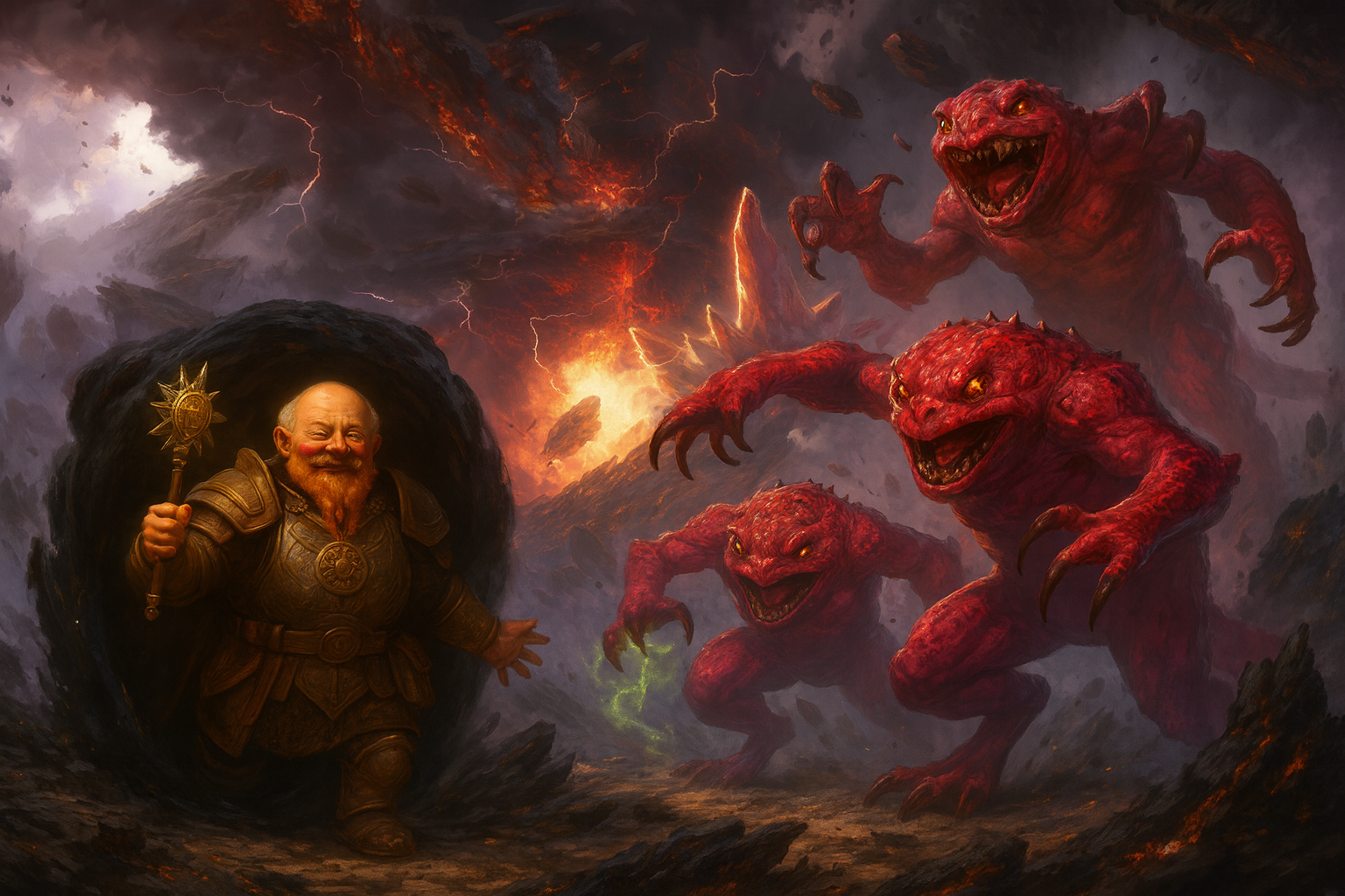 - Chaos Front: Three Red Slaadi block the party’s path in the Realm of Chaos.