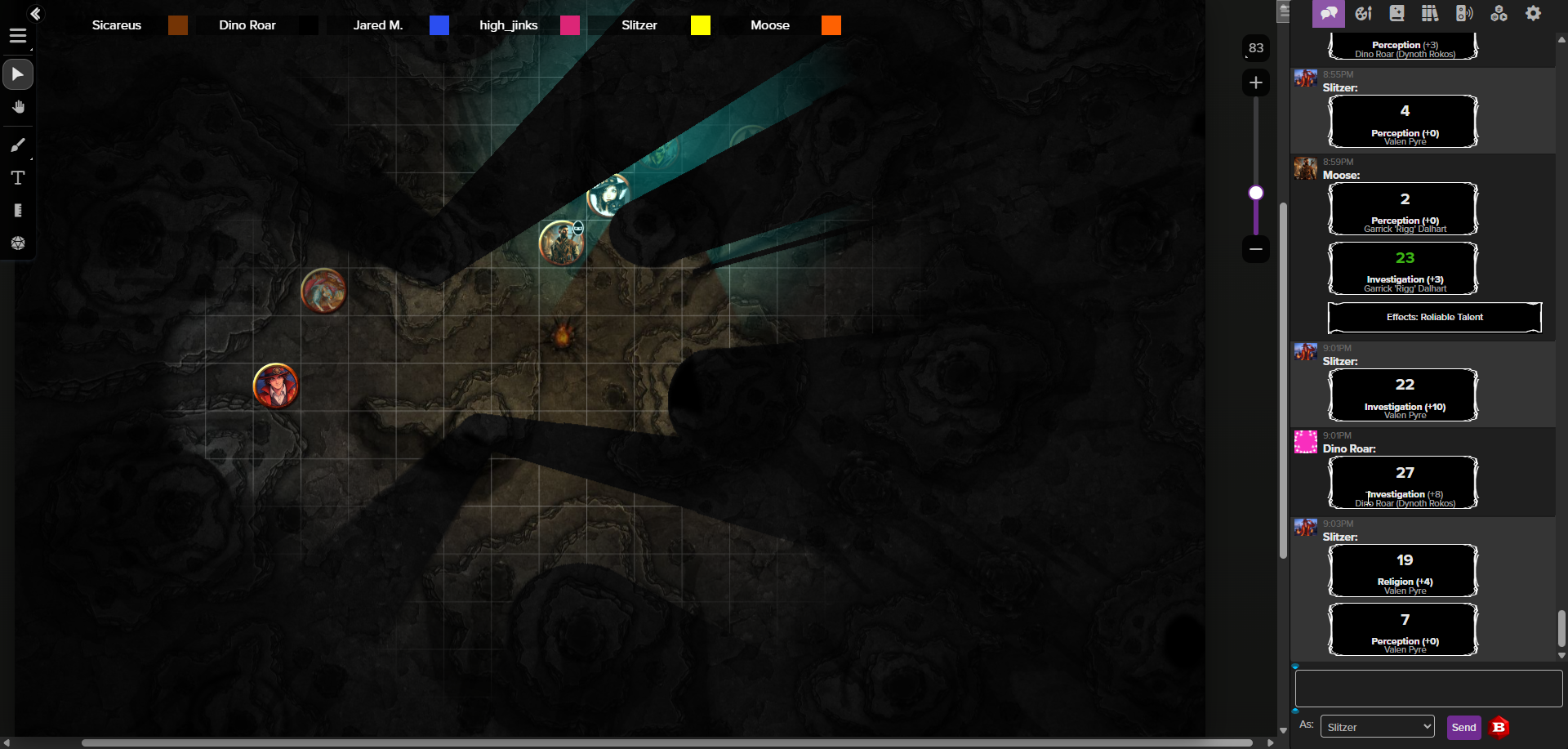 | Dino Roar (Dynoth Rokos) | Robb / Baconbuff | Artificer (Battle Smith) / Fighter | Githyanki | Used Detect Thoughts on the “stay” villagers (received a unified chorus); triggered the Hook Horror fight by kicking the “rock;” pushed to engage the carriage threat; cast Heroism and jumped onto the carriage at the cliffhanger. |