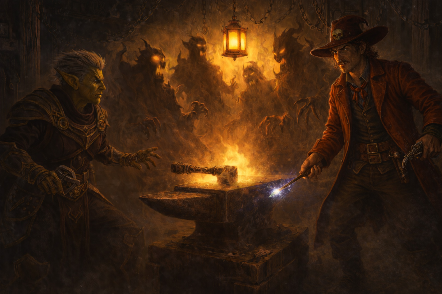 | Ghost-Lantern | Party discovery | A lantern whose light reveals dwarven echoes repeating the final motions of forge-work and panic. Status: Still in the forge at session end. |