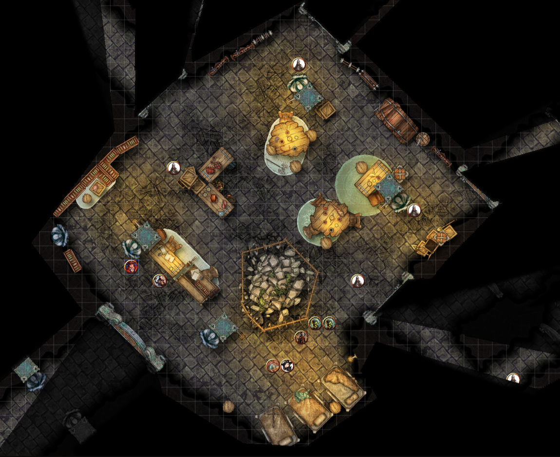 - Surprise melee: A lone Quaggoth was tearing into three guards. Unsure of allegiances, the party leapt in anyway.