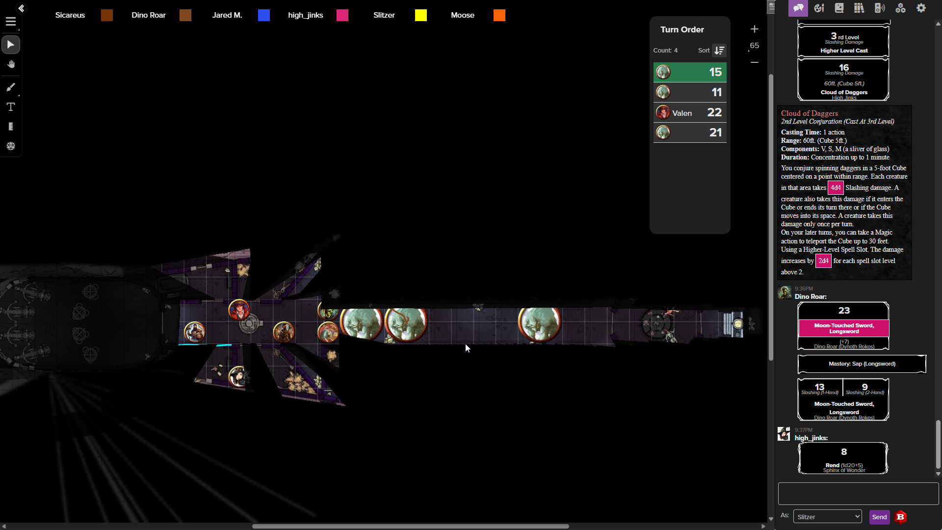 Opened both fights with Eldritch Blasts, then cast Cloud of Daggers to shred quaggoths after Valen’s Fireball.
