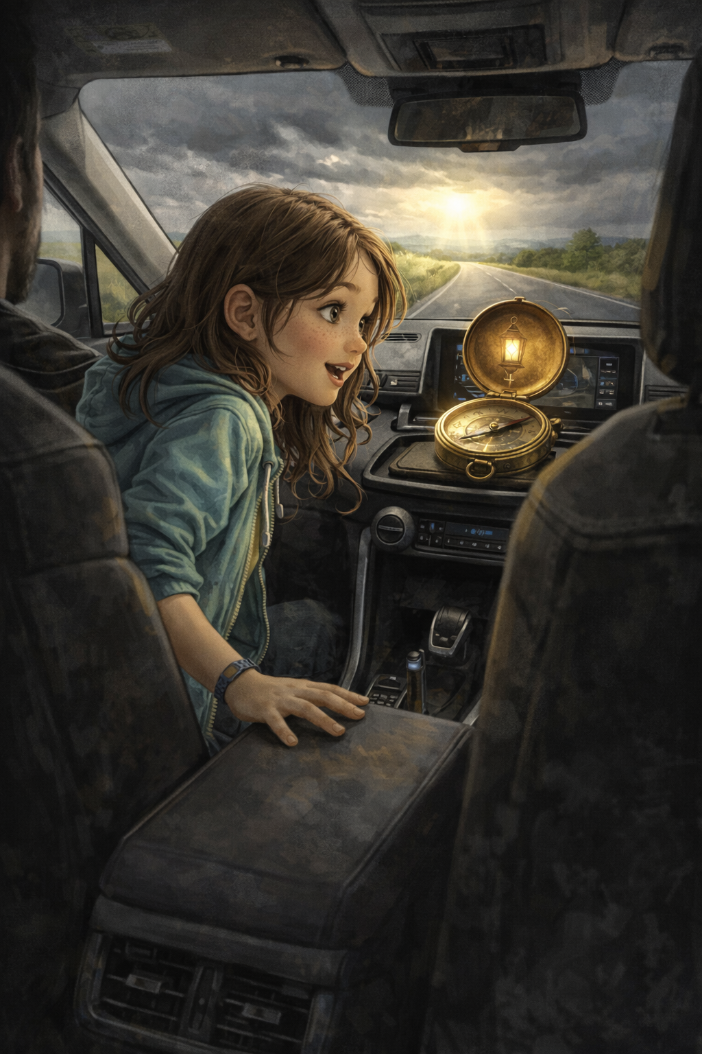 Not new-brass shiny. Old-brass. Dull in places and rubbed bright in others, with a glass face cloudy around the edges. It was heavier-looking than a normal toy-shop compass and stranger somehow, though Ivy could not have said why at first. Then she saw the lid.