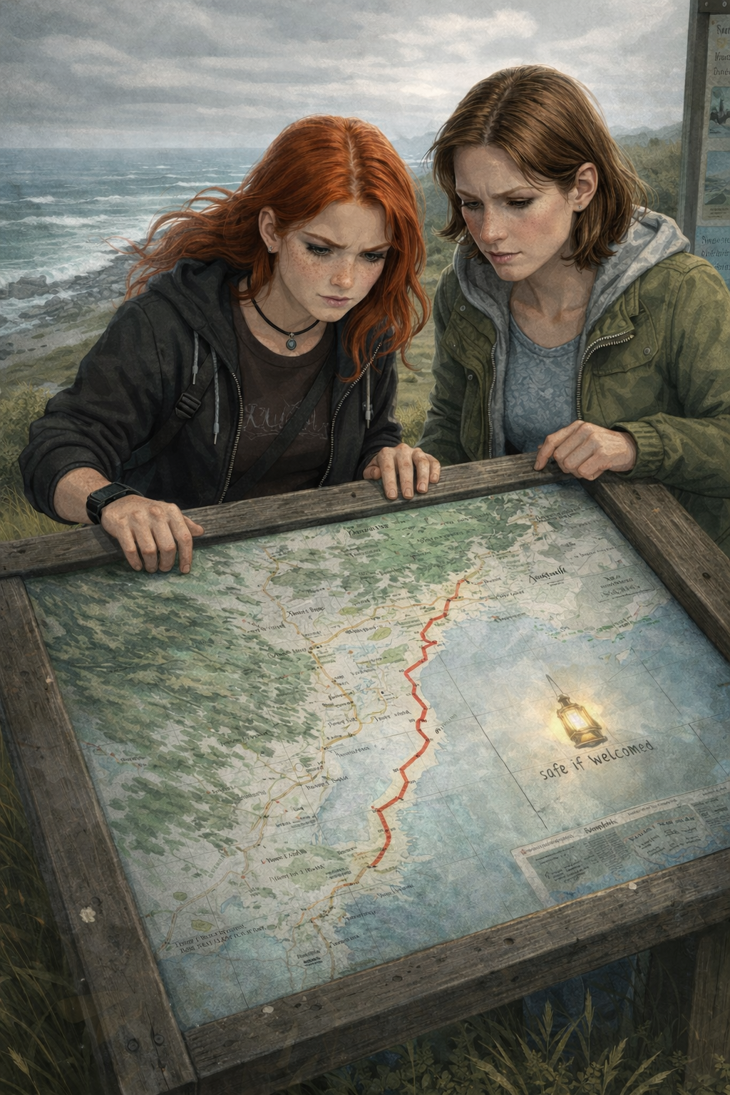 The line began at a point marked YOU ARE HERE and slipped off the printed road entirely, curving through blank green space toward a tiny symbol Ivy did not recognise. It looked like a lantern.