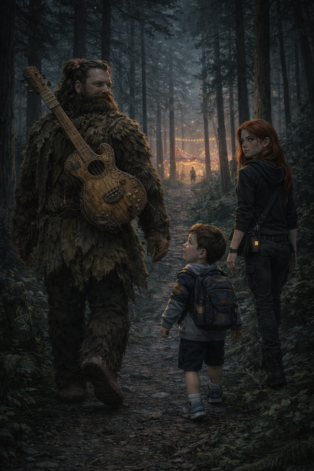 The bypass began narrow enough that they left the car in the clearing and went on foot. Needles softened the ground. Ferns brushed their legs. The bright music stayed to their right, sometimes close, sometimes far away in a way that didn’t obey distance.