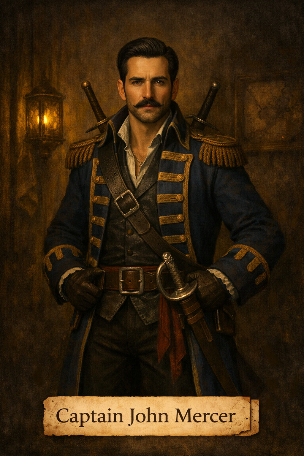 - Session 1 — Established as “stealthy and persuasive”: Introduced as Captain John Mercer, Rogue (Level 2), with a stealth-and-social reputation.