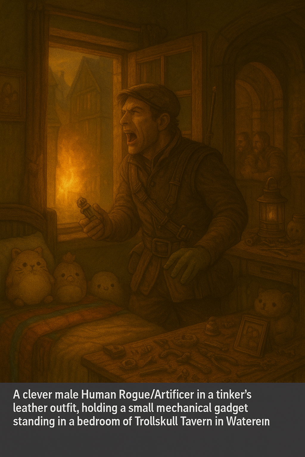 Overview: In Session 3 of this Dungeons & Dragons campaign set in Waterdeep, the partyâconsisting of Artemis (Human Rogue), Dren (Dwarf Eldritch Knight Fighter), Eyeless (Protector Aasimar Paladin), Kenneth (Rogue, possibly Captain John Mercer), and Slim Jim (likely a Cleric or healer)âcontinues their investigation into a fireball explosion tied to the Necklace of Fireballs. Their journey leads them to theâ Temple of Gond, whereCity theySewers, uncoverand Trollskull Tavern